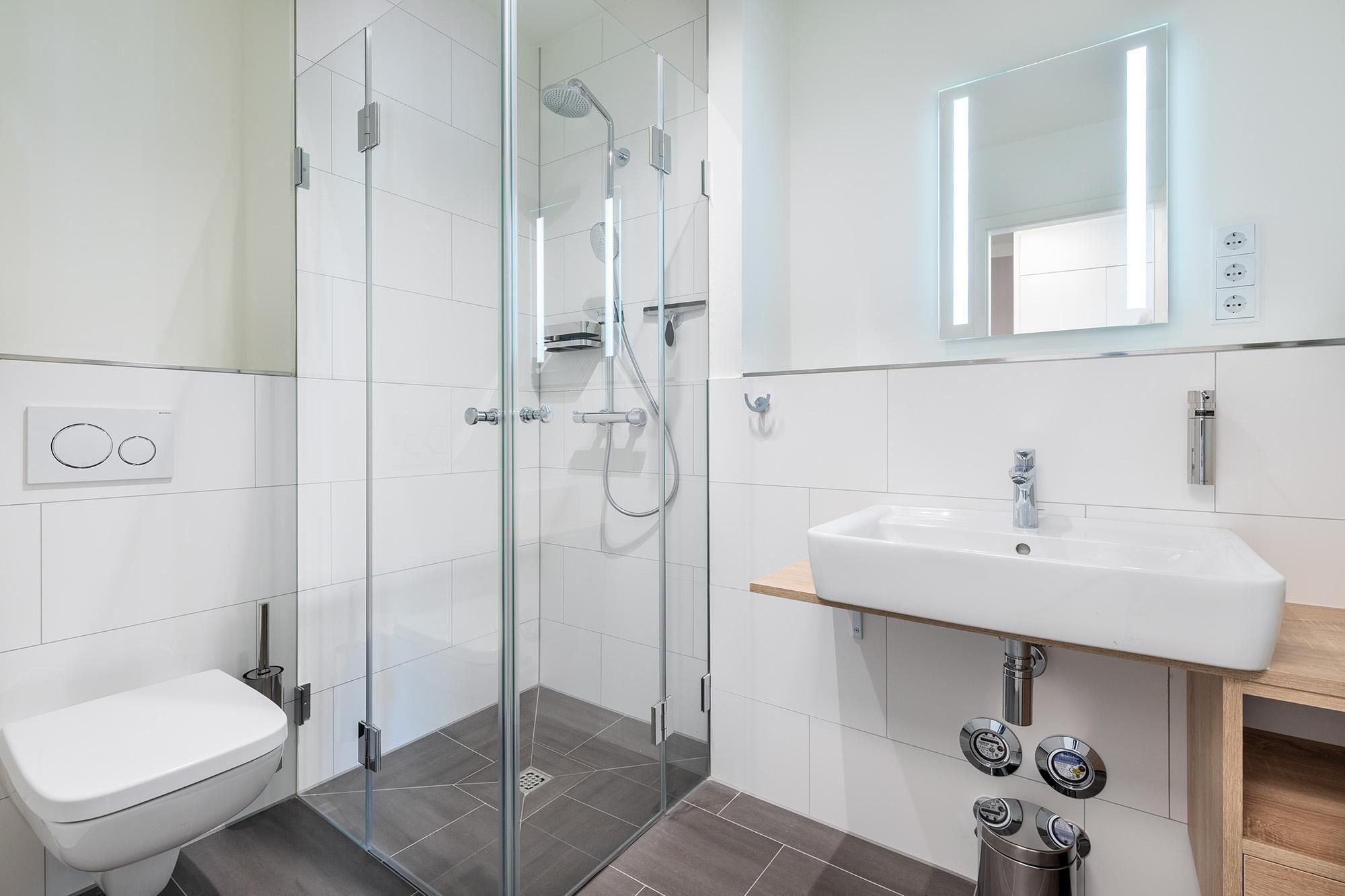Ein besonderes Highlight ist die großzügige Wellnesslandschaft: Finnische Sauna, Biosauna, Fußbäder, Erlebnisduschen, Eisbrunnen sowie Ruhezonen mit Kamin laden zum Entspannen ein. Während der Öffnungszeiten steht Ihnen der Spa-Bereich kostenfrei zur Verfügung. Wer keinen Bademantel dabei hat, kann sich diesen ebenso wie Saunatücher bequem gegen eine geringe Gebühr leihen. Ein Aufzug verbindet den Wellnessbereich mit allen Etagen, sodass Sie bequem zu Ihrer Wohnung gelangen können.