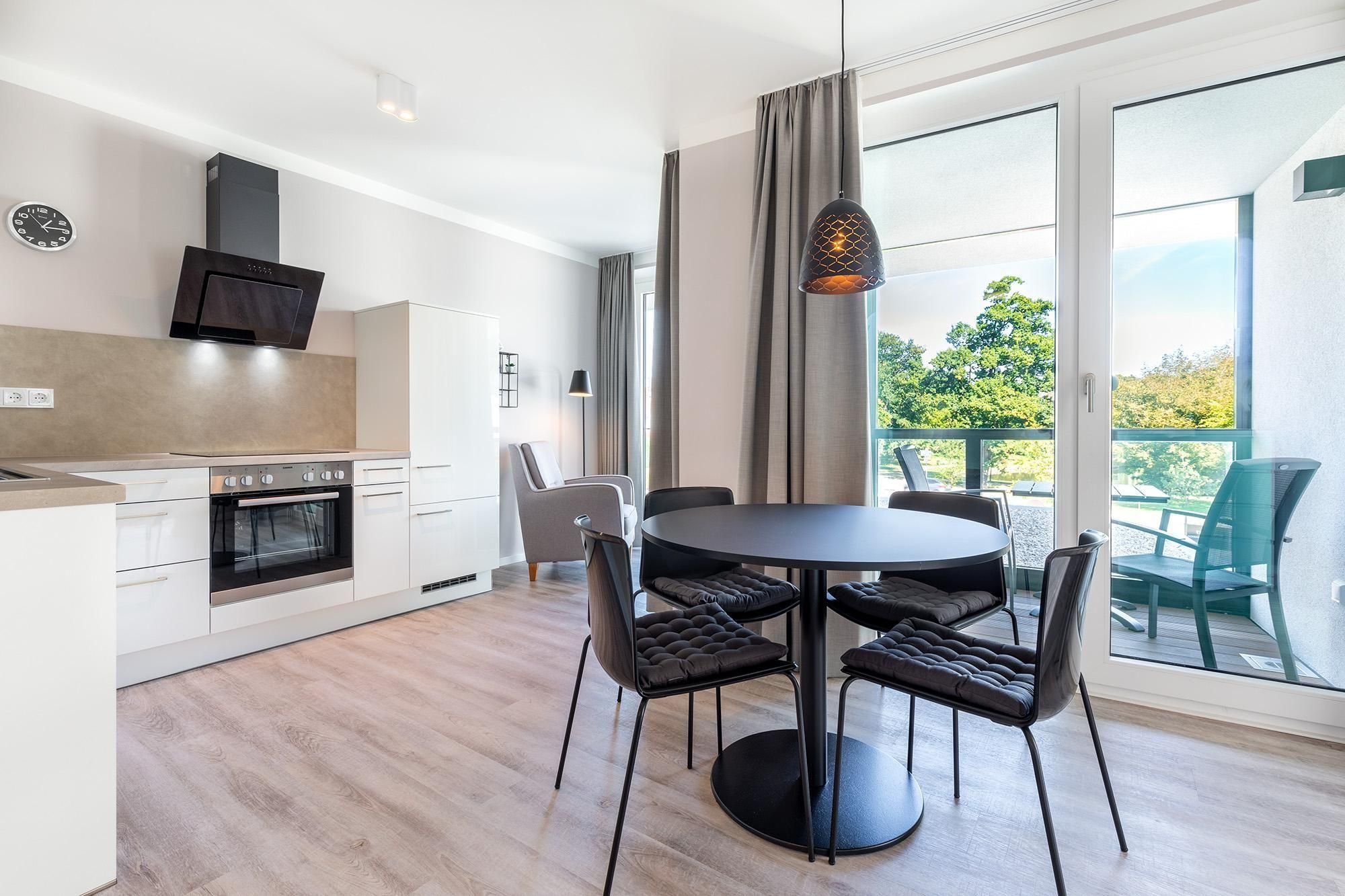 Genießen Sie auf 67 m² Wohnfläche ein modernes 2-Zimmer-Apartment, das ideal für bis zu vier Personen geeignet ist. Die überdachte Loggia zur Nordostseite bietet einen herrlichen Blick ins Grüne – perfekt, um das gesunde Meeresklima der Ostsee ganz entspannt zu genießen. Hier starten Sie entspannt in den Tag oder lassen ihn bei einem Glas Wein gemütlich ausklingen.