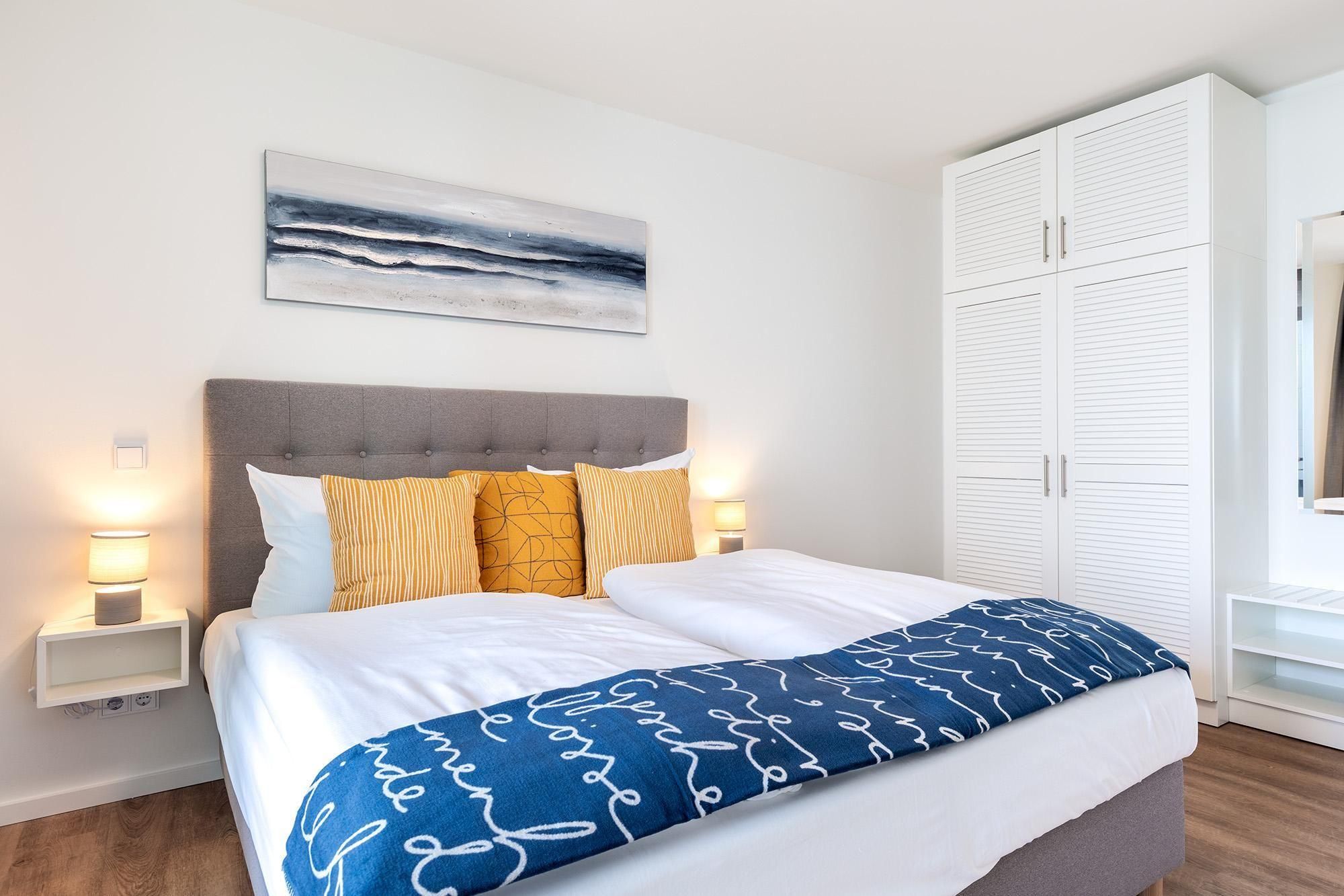 Im separaten Schlafzimmer erwartet Sie ein hochwertiges Boxspringbett, das für erholsame Nächte sorgt. Auch hier steht Ihnen ein SMART-TV zur Verfügung. Das stilvolle Badezimmer ist modern eingerichtet und verfügt über eine ebenerdige Dusche, WC, Waschtisch mit Föhn, Handtuchheizkörper und ebenfalls über eine angenehme Fußbodenheizung.