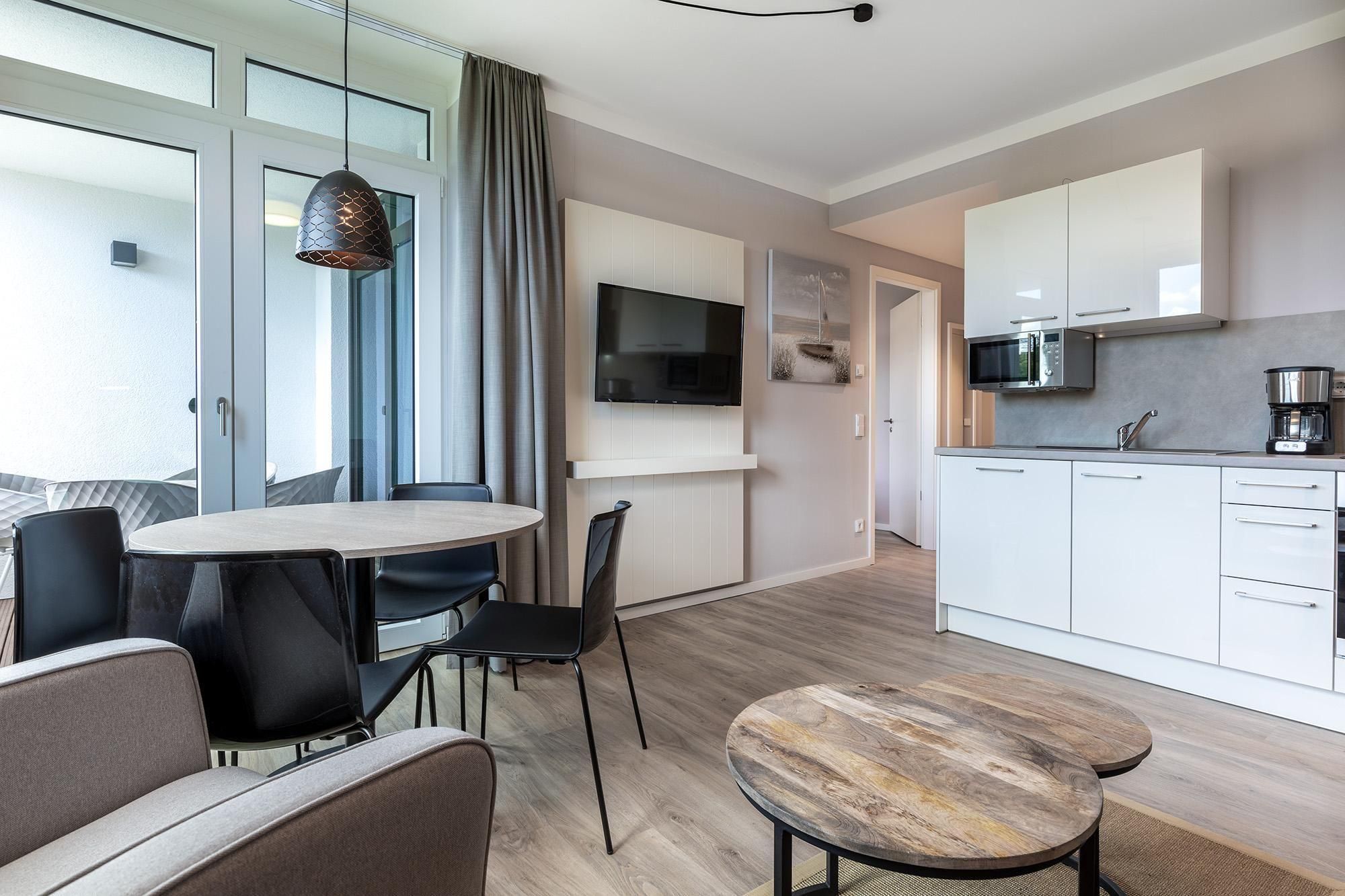 Das Apartment überzeugt durch seine helle, freundliche Atmosphäre sowie eine hochwertige Ausstattung. Fußbodenheizung, sonnenschutzverglaste, teilweise bodentiefe Fenster und kostenfreies WLAN sorgen für Wohlbefinden zu jeder Jahreszeit.