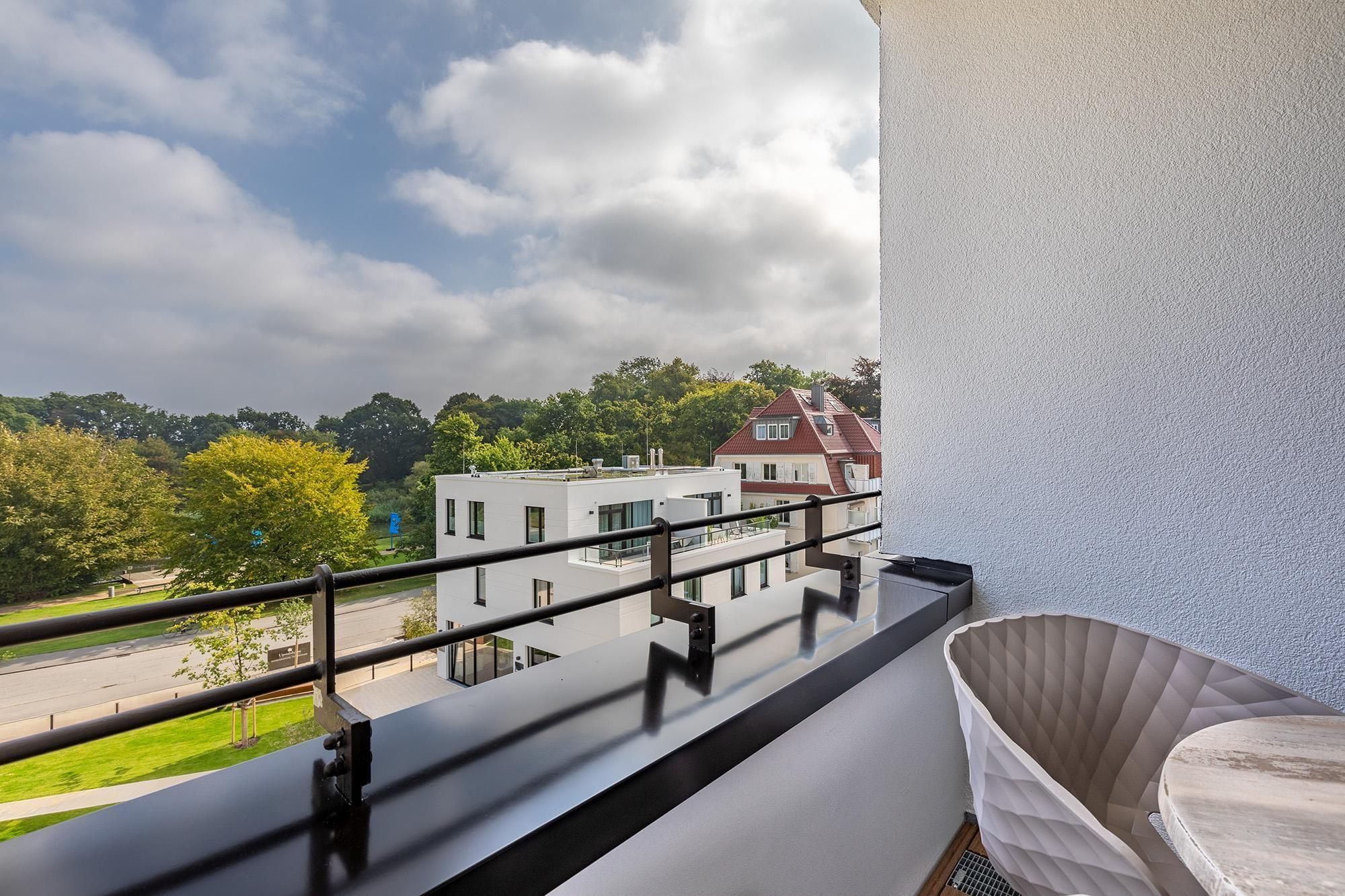 Das 44 m² große Nichtraucher-Apartment überzeugt durch seine moderne, klare Gestaltung und eine hochwertige Ausstattung, die Ihnen vom ersten Moment an das Gefühl gibt, angekommen zu sein. Große, sonnenschutzverglaste, bodentiefe Fenster durchfluten den Wohnraum mit Licht und eröffnen Ihnen einen herrlichen Blick in den Godewindpark mit herrlichem altem Baumbestand. Die Loggia ist ein echtes Highlight – sie bietet nicht nur geschützte Privatsphäre, sondern auch den perfekten Ort für entspannte Stunden im Freien.